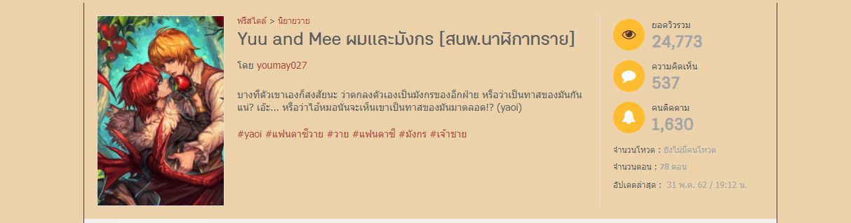มาคอยเอาใจช่วยยูและมีฝ่าฟันอุปสรรค์ต่างๆ ไปด้วยกันได้ในเรื่อง Yuu and Mee ผมและมังกร แอบกระซิบว่าเรื่องนี้ตีพิมพ์แล้วเรียบร้อย หากสนใจก็ไปอุดหนุนคนเขียนกันได้นะค้าบ