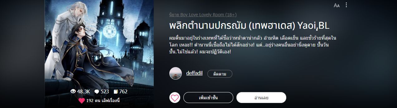 สำหรับใครที่เป็นสายปกรณัมกรีก-โรมัน หรือเหล่าเทพที่อาศัยบนโอลิมปัสแล้วล่ะก็ ห้ามพลาดเรื่องนี้เลยทีเดียว โดยตัวนายเอกของเรื่องที่เป็นคนในยุคปัจจุบันดันได้เข้าไปอยู่ในร่างของเทพฮาเดสที่ขึ้นชื่อว่าหน้าตาน่ากลัว อำมหิต เลือดเย็นและชั่วร้าย และแน่นอนว่าพอเข้าไปแล้วก็จำต้องปฏิวัติเอาซะใหม่ โดยมีพระเอกเป็นผู้ช่วย (พ่อบ้าน) ที่ดีตามเอาใจไม่ห่าง ถือเป็นการประยุกต์ตำนานเก่ามาปัดฝุ่นใหม่ให้เข้าใจง่ายกว่าเดิม และเนื้อเรื่องก็เข้มข้น ผูกและคลายปมได้อย่างดี ทำให้รู้สึกอินตามได้ไม่ยากเลย (ปัจจุบันมีเล่มขายแล้วนะคะไปซื้อกันได้ ! )