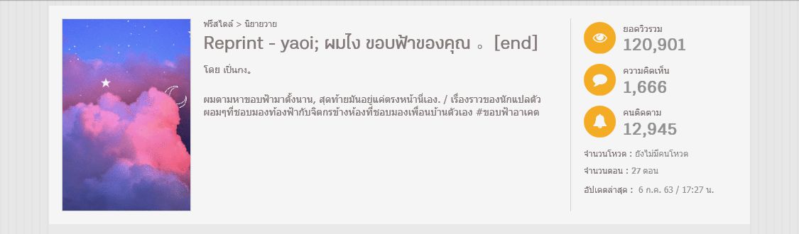ฮู้ว— ในที่สุดก็ครบสักที เป็นยังไงกันบ้างค้าทุกคน กับนิยายวาย 5 แนว 15เรื่องที่เรานำมาแนะนำกันพอกรุบกริบหอมปากหอมคอในวันนี้ หวังว่าทุกคนจะได้นิยายเก็บเข้าคลังเพิ่มสักเรื่องสองเรื่องก็ยังดีนะคะ หรือใครที่แวะมาดู blog ของเราแล้วก็ร้อง 'เห้ย ! นี่มันตรงกับที่เราอ่านแทบทุกเรื่องเลยนี่หว่า' ก็ยินดีด้วยนะคะ ถือว่าคุณเทสดีพอสมควรเลย คิ้กค้าก ล้อเล่นนะค้าบ