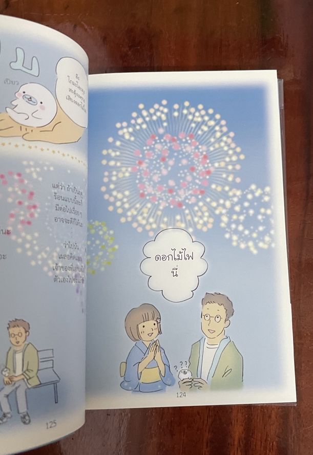 ซึ่งในขณะที่ทั้งคู่กำลังคุยกันอยู่ ก็มีพลุดังขึ้นมาอย่างสวยงาม และเจ้าโกมะโอะตื่มาดูพลุด้วยความตื่นเต้น ทำให้ทั้งสามมีความสุข