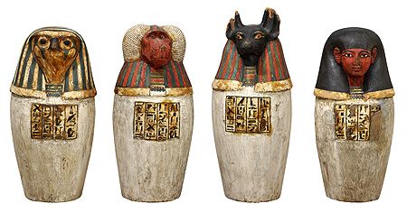 ส่วนวิธีเอาเครื่องในออก สัปเหร่อจะใช้มีดผ่าที่ช่องท้องด้านซ้ายแล้วล้วงทุกอย่างออกมา วัตถุดิบสำคัญในการดองมัมมี่ที่ชาวอียิปต์โบราณใช้มีชื่อว่า "นาตรอน" ซึ่งก็คือ เกลือโซเดียมคาร์บอน์เนต นั่นเอง เครื่องในที่ถูกล้วงออกมาจะถูกล้างจนสะอาด ก่อนหมักเกลือนาตรอนไว้จนแห้ง หลังจากนั้นจะถูกห่อด้วยผ้าแล้วนำไปเก็บใน "โถคาโนปิค" ที่มีฝาเป็นเศียรของเทพ 4 องค์ แต่ละโถมีหน้าที่เก็บอวัยวะภายในแต่ละส่วนต่างกันไป