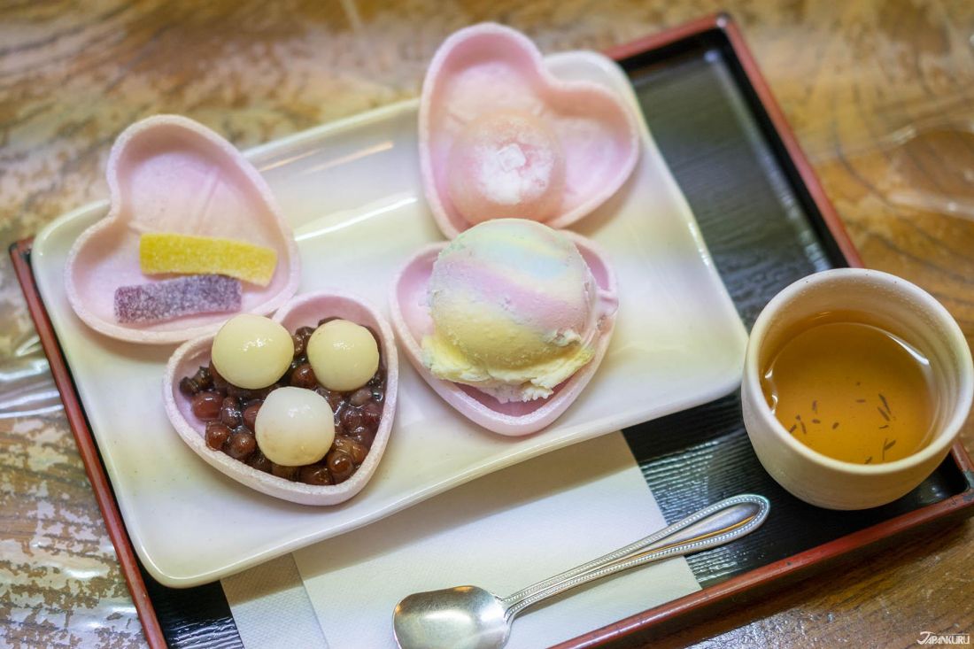 แต่ถ้าหากว่าร่างกายยังต้องการของหวานเพิ่ม เวเฟอร์โมนากะรูปหัวใจจากร้าน Michikusa ที่เสริฟมาพร้อมกับไอศครีมและขนมหวานชิ้นเล็กๆ น่ารักจนไม่กล้ากินเลยหละ!