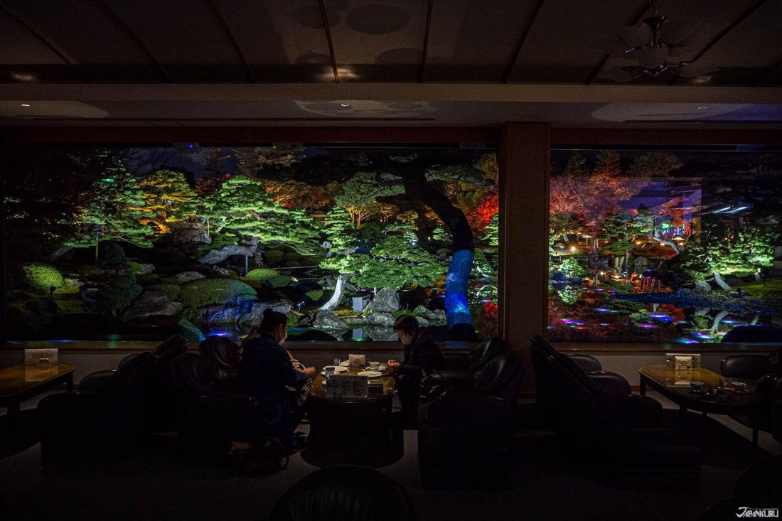 สามารถนั่งจิบชา รับประทานอาหารในคาเฟ่ พร้อมกับชมการแสดงแสงสีสไตล์ญี่ปุ่น มองออกไปนอกหน้าต่าง ชมภาพของสวนที่แต่งแต้มด้วยแสงไฟ เป็นประสบการณ์ที่คุ้มค่าจริงๆ