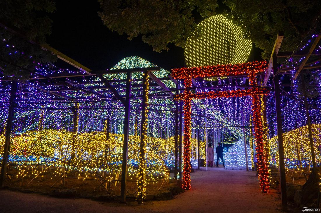 สวนยูชิเอ็น (Yuushien Garden) มีพื้นที่กว่า 40,000 ตารางเมตร มีสระน้ำ และพื้นที่ที่ได้แรงบันดาลใจมาจากภูมิทัศน์ของอิซุโมะ ในฤดูใบไม้ผลิจะมีดอกโบตั๋นลอยน้ำ และใบไม้หลากสีในฤดูใบไม้ร่วง โดยเฉพาะในตอนกลางคืน ที่มีการประดับไฟอย่างสวยงาม "Garden of Light" (光の庭園)