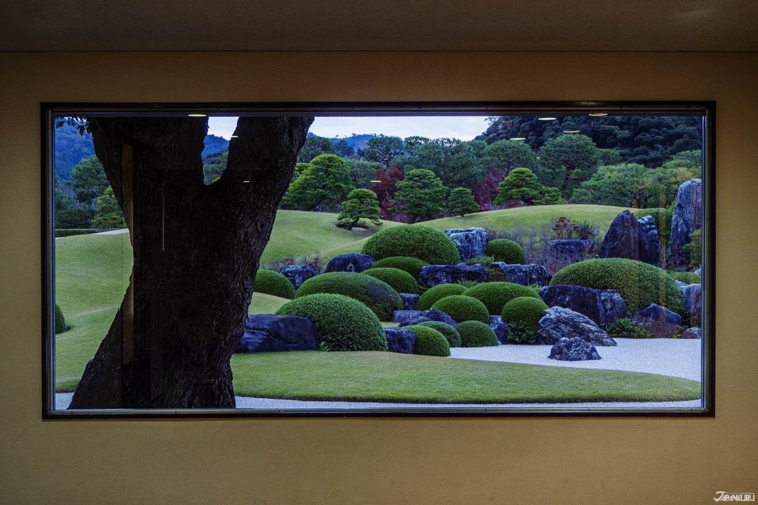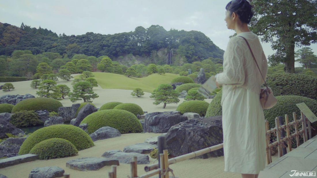 เราได้แนะนำสวนยูชิเอ็น และ garden teahouse ไปแล้ว แต่ยังมีสวนที่น่าไปอีกแห่ง ยิ่งถ้าคุณเป็นคนที่ชื่นชอบสวนญี่ปุ่นแล้วพลาดไม่ได้ เพราะที่นี่ไม่เพียงแต่เป็นสวนหินแบบดั้งเดิมที่มีชื่อเสียงในระดับสากล (枯山水庭 "The Dry Landscape Garden") แต่ยังมีภูเขาอันงดงามเป็นฉากหลังทำให้ทิวทัศน์นั้นเปลี่ยนแปลงไปเรื่อย ๆ และเป็นเวลา 18 ปีติดต่อกันที่สวนที่ Adachi Museum of Art ได้รับการจัดอันดับให้เป็นสวนที่สวยที่สุดในญี่ปุ่นอย่างต่อเนื่องในสื่อต่างๆ เช่น "Sukiya Living Magazine: The Journal of Japanese Gardening" ของอเมริกา และในแต่ละปีมีผู้คนเข้าเยี่ยมชมมากกว่า 600,000 คน