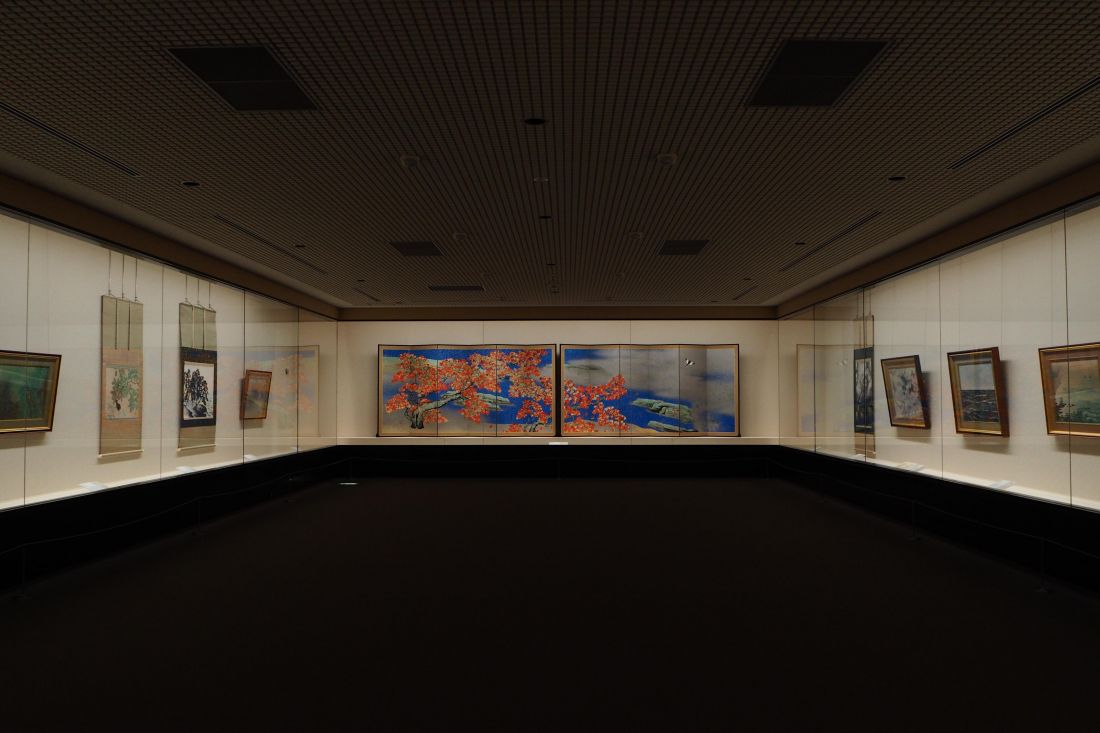 ด้วยความเชื่อว่า สวนเป็นผลงานศิลปะอีกชิ้นหนึ่ง Adachi จึงจัดให้พิพิธภัณฑ์มีการจัดวางที่ไม่เหมือนใคร และเพิ่มวิธีที่จะสามารถเพลิดเพลินไปกับทิวทัศน์ของสวน ท่ามกลางภาพวาดเมื่อฤดูกาลเปลี่ยนไป หน้าต่างเปิดออกสู่มุมมองที่เฉพาะ เผยให้เห็นวิวด้านนอก และได้ชื่อว่า "Natural Framed Picture" ("生の額絵") ทำให้เป็นพิพิธภัณฑ์ที่ผู้เข้าชมสามารถชม "famous pieces" ตามสภาพอากาศงและฤดูกาลที่เปลี่ยนไป