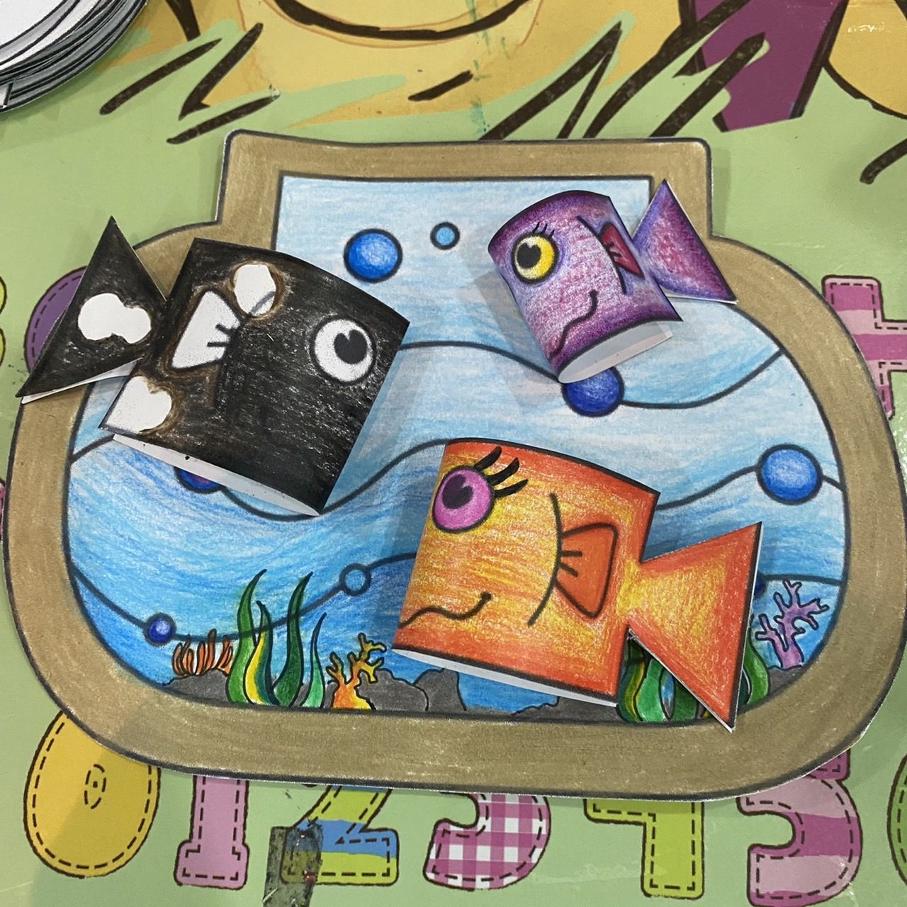 และแล้วก็มาถึงวันสุดท้ายของสัปดาห์แรกในการฝึกงาน วันนี้มีการจัดกิจกรรมให้น้องได้ทำตู้ปลาค่ะ ระบายสีปลาและตู้ปลาของตนเอง เสร็จแล้วนำไปแลกรับของรางวัลได้ซึ่งของรางวัลคือขนม
