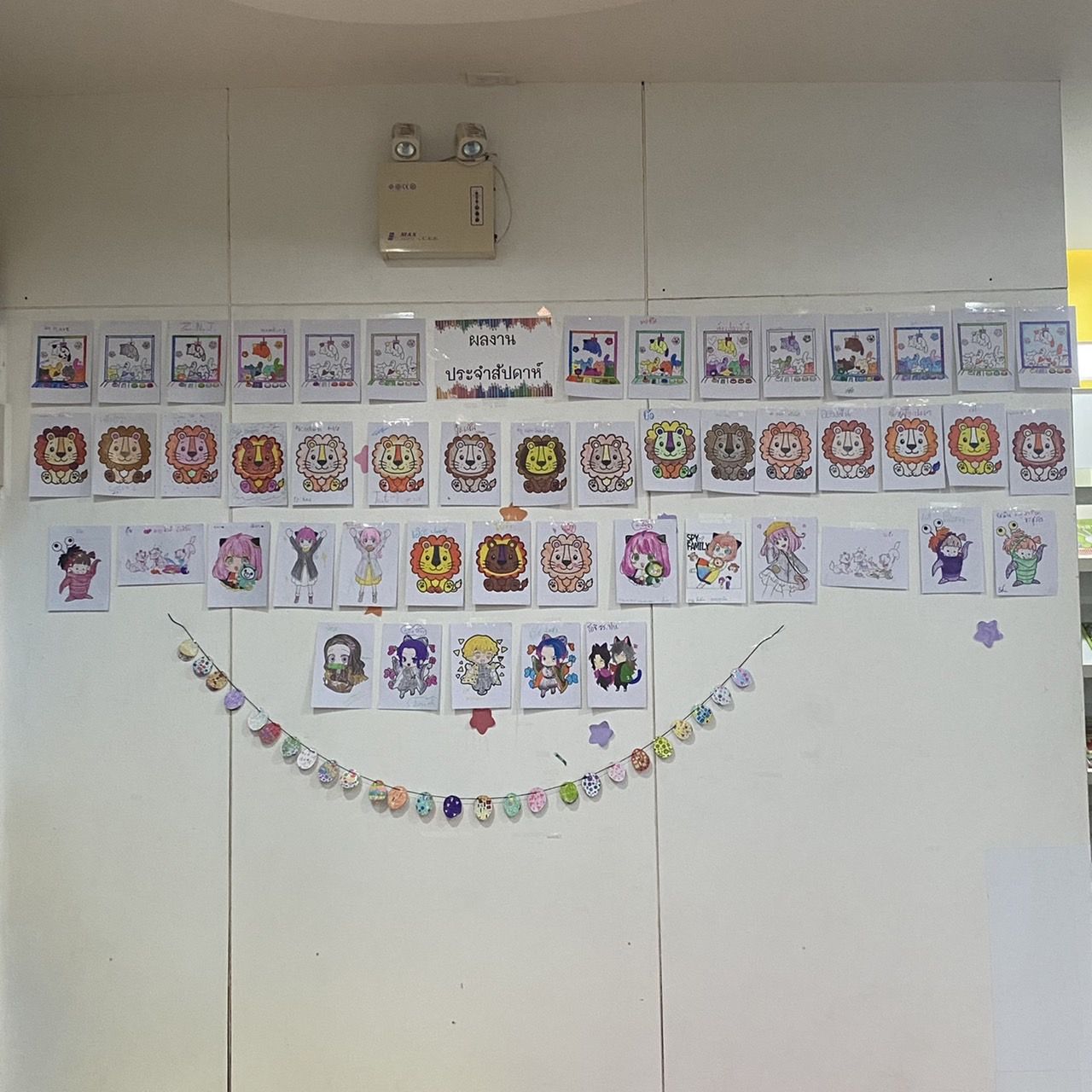 สัปดาห์ที่ 4 เริ่มต้นในวันอังคารที่ 20 มิถุนายน 2566 แน่นอนว่าทุกการเริ่มต้นสัปดาห์เราจะต้องทำการติดผลงานของน้อง ๆ ใหม่ทุกครั้ง และครั้งนี้ก็อีกเช่นเคย ผลงานสัปดาห์นี้ดูน้อยนิดเพราะว่าสัปดาห์ที่แล้วเราทำแต่ของชิ้นเล็กชิ้นน้อยค่ะ ผลงานจึงดูไม่ค่อยมีอะไรติด บางผลงานน้อง ๆ ก็เอากลับบ้าน แต่ส่วนมากไม่ค่อยเอากลับกันหรอกค่ะเพราะถ้าไม่ส่งจะไม่ได้ขนม!