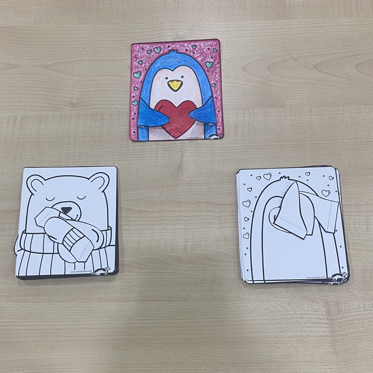 และในวันนี้กิจกรรมของเราคือระบายสีหมีหรือเพนกวิ้นแล้วนำมาติดกาวสองหน้าให้เสร็จสมบูรณ์ ทุก ๆ กิจกรรมเราจะทำให้น้องดูเป็นตัวอย่างค่ะ น้อง ๆ จะได้เห็นว่าเมื่อทำเสร็จแล้วจะออกมาเป็นประมาณนี้นะ ไม่ได้ขยันหรืออะไรหรอกนะคะแต่ว่าอยากให้ผลงานของตัวเองได้อยู่ติดอยู่บนบอร์ดบ้าง อิอิ แต่ถึงแม้เราจะทำตัวอย่างไว้ให้ดูแล้วน้อง ๆ บาคนก็ยังเกิดข้อสงสัยค่ะว่ามันติดยังไง เราจึงบอกว่าให้ระบายสีให้เสร็จก่อนเดี๋ยวพี่จะสอน แต่ละคนนี่ตั้งใจทำสุด ๆ ไปเลยค่ะ!