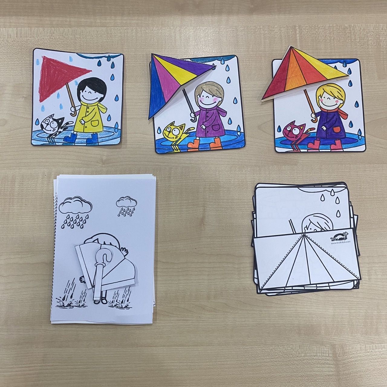 วันต่อมาก็เป็นกิจกรรมเล็ก ๆ อีกเช่นเคย ช่วงนี้กำลังจะเข้าหน้าฝนจึงนำรูปภาพที่เกี่ยวกับฝนมาให้ระบายกันค่ะ ให้รู้จักพกร่ม พกเสื้อกันฝนจะได้ไม่สบาย ไม่เป็นหวัดเพราะการป่วยแต่ละครั้งมันทรมานมากจริง ๆ และครั้งนี้มีตัวอย่างถึง 3 รูปเลยเพราะพี่ ๆ ระบายกันทุกคนค่ะ จะเห็นได้ว่าถ้ารูปไหนเราระบายให้น้อง ๆ ดู น้อง ๆ จะหยิบรูปนั้นเป็นส่วนใหญ่ค่ะเรียกง่าย ๆ ว่ารูปนั้นจะขายดีกว่าเพื่อน แต่ว่าก็ไม่ตลอดไปนะคะ ถ้าเราเลือกทำรูปยาก ๆ น้อง ๆ ก็ไม่ทำตามเหมือนกันค่ะy-y