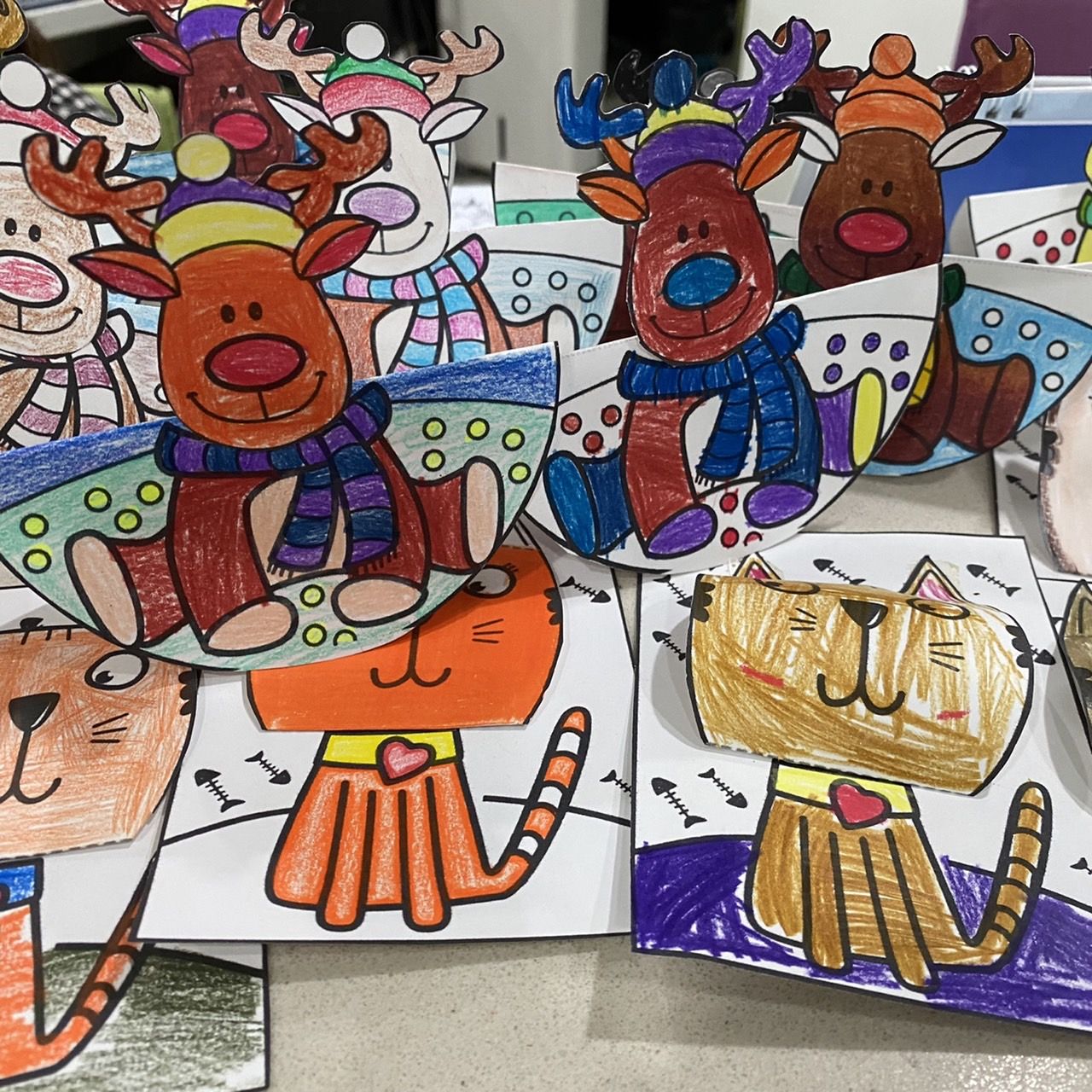 แต่มองไปมองมาก็น่ารักนะคะทั้งแมวและกวางเลย เมื่อผลงานอยู่รวม ๆ กันแล้วดูสวยขึ้นมาทันตาเลยค่ะ พี่มีความสุขมากเวลาน้อง ๆ ตั้งใจระบาย มันปลื้มปริ่มค่ะที่น้อง ๆ ตั้งใจทำ ต่อให้จะระบายสวยหรือไม่สวยพี่ก็ชอบหมด แค่มาทำพี่ก็ดีใจแล้ว