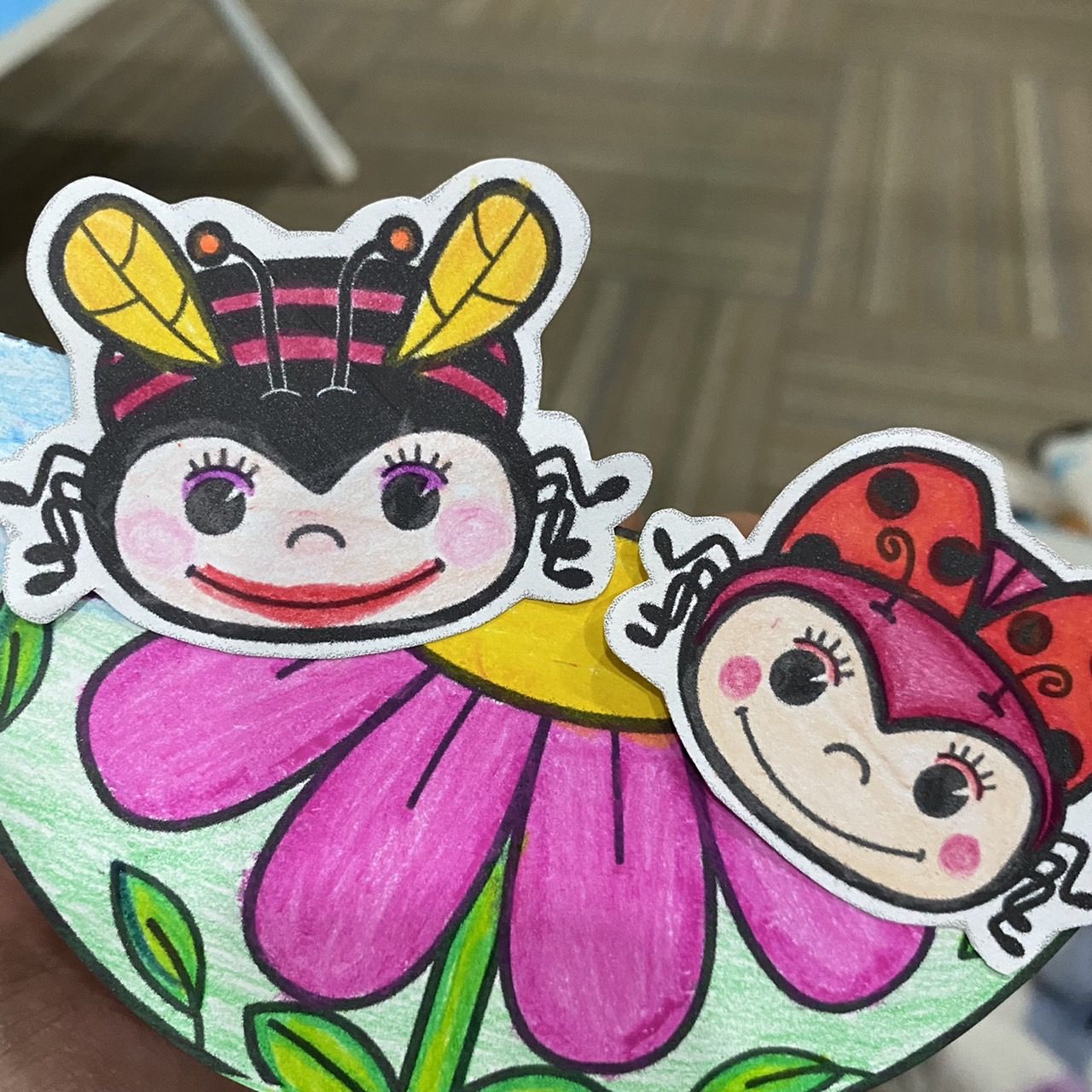 ต่อมาเป็นกิจกรรมวันพุธ กิจกรรมของวันนี้น้อง ๆ จะได้ระบายสีแมลงเต่าทอง บางคนบอกหนูเอาตัวเดียวได้ไหม อยากได้แค่ตัวเดียว บอกแบบนี้กันทีไรพอทำจริง ๆ ก็ทำกันสองตัวตลอดค่ะเพราะเมื่อเห็นเพื่อน ๆ ทำกันแล้วอาจจะอยากให้มันมีสองตัวเหมือนเพื่อน แต่บางคนก็อยากได้แมลงเต่าทองเพิ่มนะคะ แต่ไม่ได้แล้วลูก ถ้าติดสามตัวแมลงเต่าทองอึดอัดแน่ ๆ ฮ่า ๆ