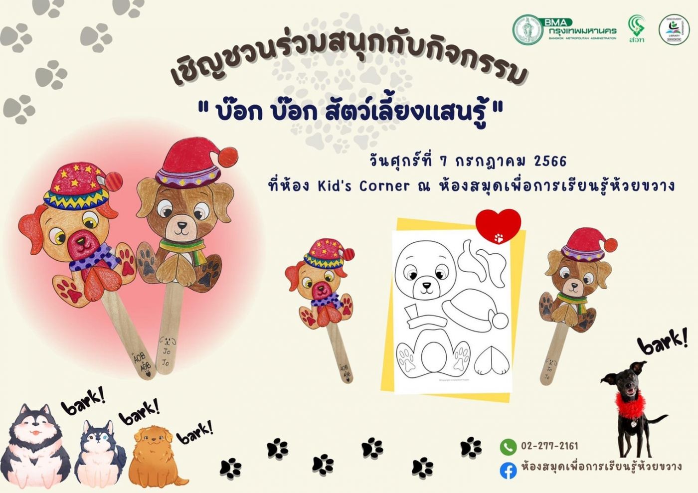 และแล้วก็มาถึงกิจกรรมใหญ่วันศุกร์ กิจกรรมของศุกร์นี้จะให้ระบายสีและประกอบน้องหมา น้อง ๆ สามารถดีไซน์ได้ตามใจชอบเลย จะระบายสีอะไร มีลายอะไรบ้างสามารถทำได้หมด ทุก ๆ ศุกร์ก็ต้องทำการโปรโมทอีกเช่นเคย
