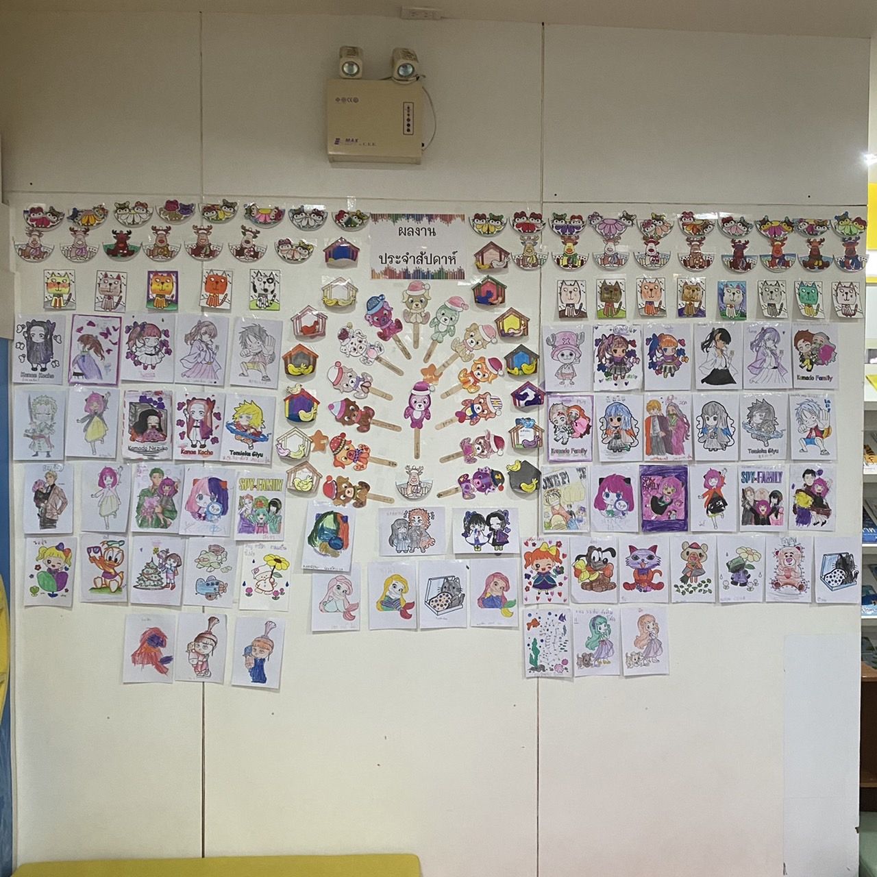กิจกรรมวันพุธจะเป็นกิจกรรมระบายสีค่ะ ให้น้อง ๆ เลือกว่าอยากระบายลายไหน น้อง ๆ บางคนจะมาแอบกระซิบว่าหนูอยากระบายลายนั้นบ้าง ลายนี้บ้าง แต่ส่วนมากชอบระบายอนิเมะกันค่ะ แต่เราก็ไม่รู้จะเลือกอนิเมะเรื่องไหนมาให้น้องระบาย เลยตัดปัญหาด้วยการเลือกลายที่ชอบกันเองซะเลย