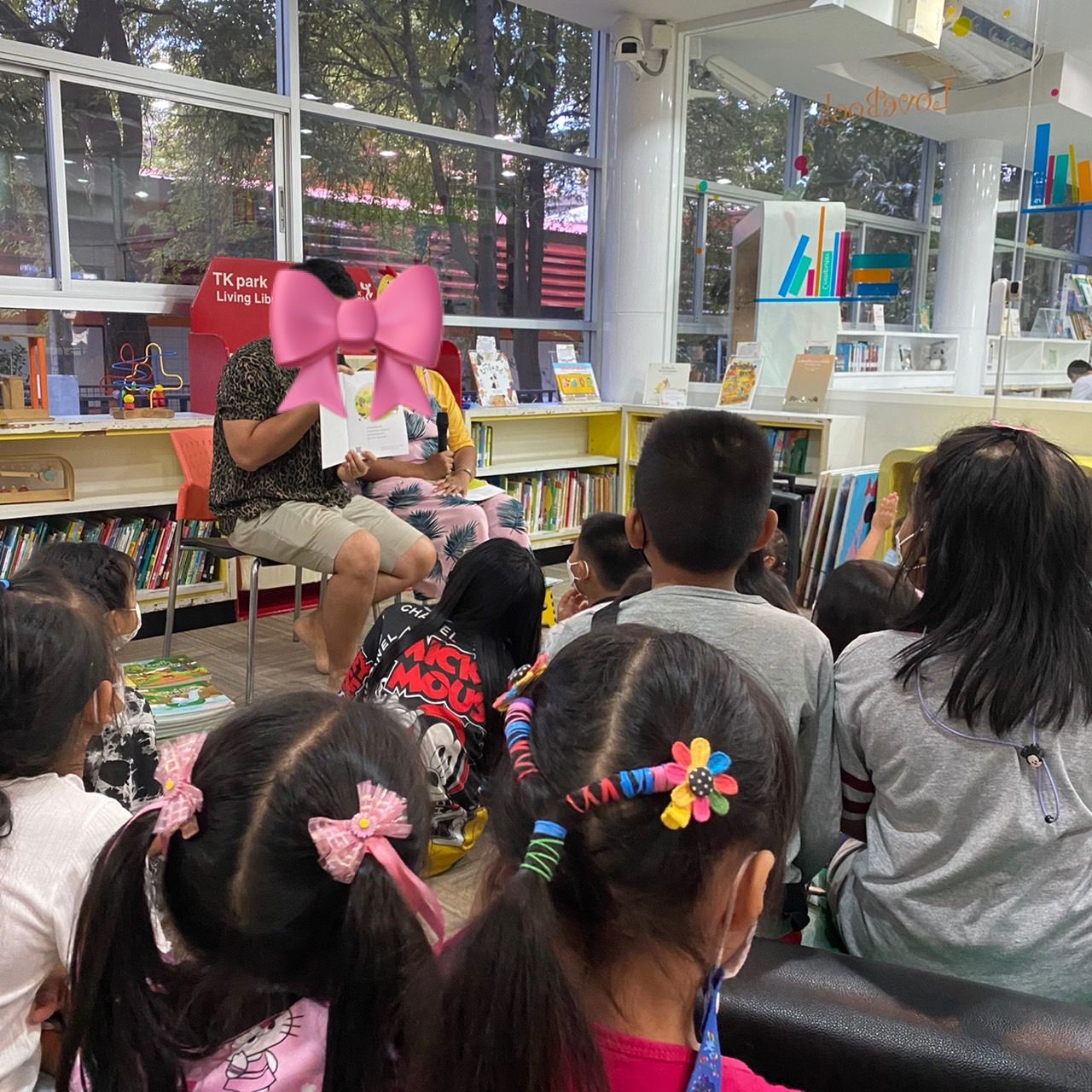 สัปดาห์นี้พิเศษนิดนึงค่ะเพราะวันเสาร์มีพี่ ๆ จากข้างนอกมาเล่านิทานให้ฟัง น้อง ๆ มาร่วมกิจกรรมกันเยอะเลย พี่ ๆ เล่าให้ฟัง 3 เรื่องค่ะ เนื้อเรื่องจะเป็นเกี่ยวกับการดูแลรักษาสิ่งแวดล้อม เมื่อพี่ ๆ เล่าจบน้อง ๆ จะได้นิทานคนละ 5 เล่มเลย แต่หนูมีความรู้สึกว่านิทานยังไม่ค่อยสนุกเท่าไหร่ค่ะเพราะเมื่อจะอธิบายอะไรสักอย่างตัวหนังสือจะเต็มหน้าเลย หนูรู้สึกว่าตัวหนังสือมันเยอะไปและเป็นการสอนแบบตรงไปตรงมาเวลาฟังเลยออกจะน่าเบื่อ ไม่ค่อยตื่นเต้นสักเท่าไหร่ซึ่งเด็ก ๆ เขาก็ฟังได้ไม่ถึง 2 เรื่องก็เริ่มอยู่ไม่นิ่งกันแล้ว หนูฟังแล้วยังเบื่อเลยค่ะ(‘∩’)
