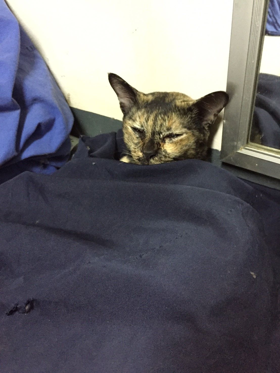 มาเจอตอนนอนซุกผ้าอยู่พอดีเลยแกล้งเอาผ้ามาห่มแล้วถ่ายรูปไว้