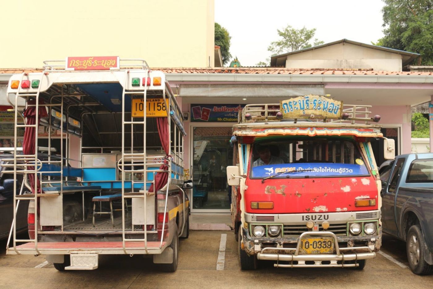 แต่เราเลือกนั่งรถทัวร์ของสมบัติทัวร์มาลงที่ตัวเมืองระนองก่อน เพราะกว่าจะเช็คอินได้ตั้งบ่ายสอง เราเลยจะเที่ยวแถวๆตัวเมือง เรานั่งรถรอบ 20.30 น. มาถึงเมืองระนองประมาณ 05.30 น. ราคา 470 บ. แล้วค่อยต่อรถสองแถวสายกะเปอร์ 45 บ. ไปบ้านไร่ไออรุณ