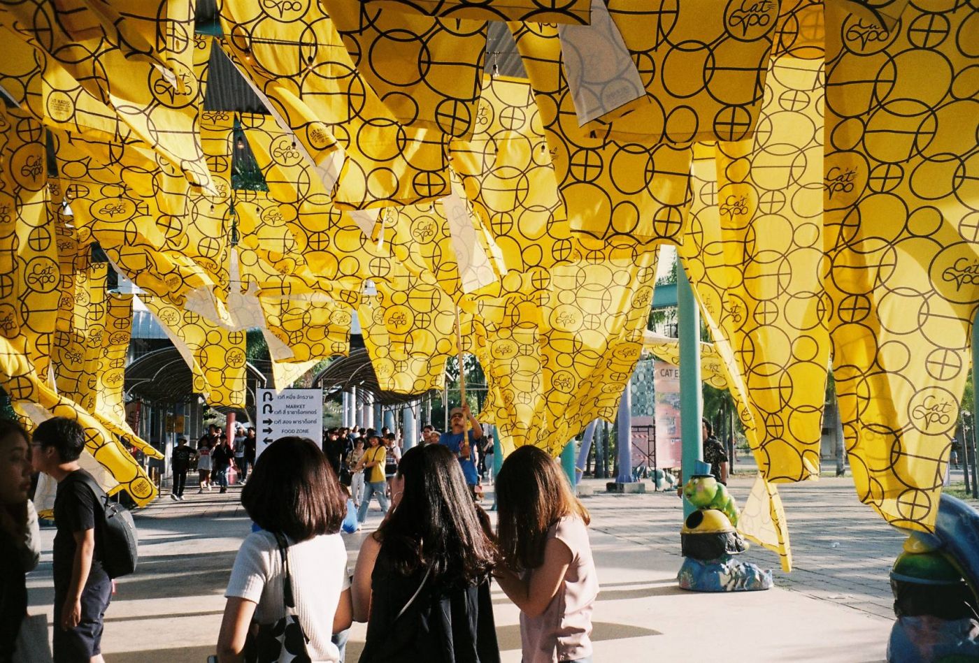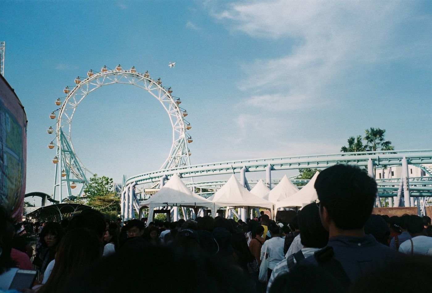 วาร์ปมาวันงาน เราตั้งต้นที่หน้าห้างแฟชั่นไอซ์แลนด์และแอบเดินตามคนที่มีสายรัดข้อมืองาน CAT ไปเรื่อยๆ เรื่อยๆ ระยะทางไกลใช้ได้เลย เราเดินอยู่ประมาณ 15 นาทีก็มาถึงปากทางเข้าสวนสนุกที่เป็นสถานที่จัดงาน มองไปก็เห็นแถวของคนที่มายืนรอประตูเปิดอยู่หลายแถวเลย หลังจากเอาบัตรไปแลกสายรัดข้อมือมาแล้วก็ขอมาต่อแถวหลบแดดด้วยคน