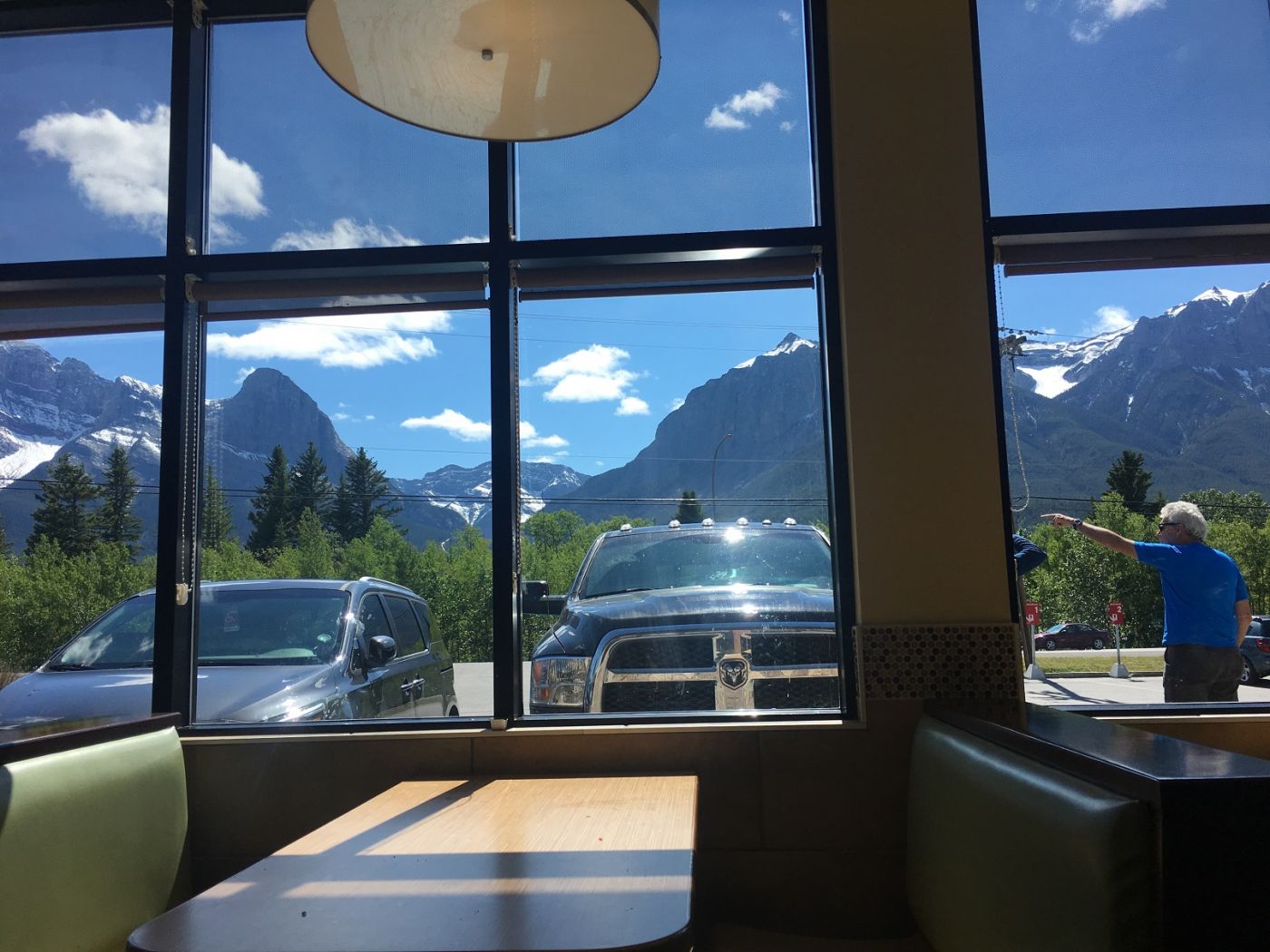 ก่อนกลับแคลการี่เราก็เลี้ยวเข้าไปแวะCanmore เมืองนี้เราสำรวจโดยการเดินเล่นในกูเกิ้ลมาแล้วว่ามันก็สวยเหมือนกัน สวยมากด้วย แต่พอเห็นของจริงกลับเฉยๆ แฮะ คงเพราะในกูเกิ้ลที่เค้าถ่ายไว้ช่วงตุลามันสวยกว่า แคนมอร์ดูเป็นเมืองท่องเที่ยวมากๆๆๆ มีแต่ร้านค้าและร้านอาหาร