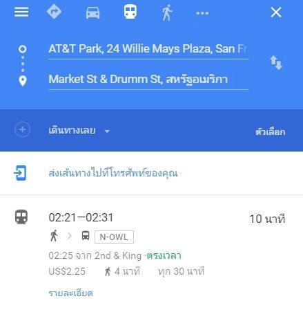 จากรูป เราเลือกการเดินทางจากat&t park ไป market street