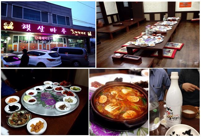 จบการประชุมที่ยาวนาน คนเกาหลีชื่อ Mr.Yoo พามากินข้าวเย็นที่ร้าน Local แบบนั่งพื้น รสชาติอาหารอร่อยและถูกปาก หรือว่าตอนนั้นหิวมากหรือป่าวนะ ระหว่างกินข้าว Mr.Yoo ก็ถามว่ากินมักมอลลี (ไวน์ข้าวเกาหลี) มั้ย ซึ่งตอนนั้นยังไม่รู้จักว่ามันคืออะไร แต่แบบอยากลองดูก็เลยบอกว่า กินๆ แล้วไม่ถามเค้าด้วยนะว่าคืออะไร พอกินปุ๊บ อืมมม รสชาติดี สายแอลอย่างเราคือสบายยยย กินๆไปรู้สึกผ่อนคลาย หายปวดเมื่อยเลย ฮ่าๆๆ