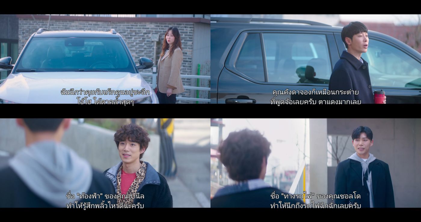 6. Dialogue มีเอกลักษณ์ แถมด้วยจังหวะตลก โบ๊ะบ๊ะ หลายครั้งเวลาที่ตัวละครกำลังคุยกัน เรามักคิดในใจว่า " นี่พวกคุณพูดอะไรกันคะเนี่ย " อยู่ ๆ ก็ยกนู่นนี่มาพูดกัน หรือ แนะนำตัวกันอยู่ดี ๆ ก็ลามไปเรื่องไหนก็ไม่รู้ 5555555 โดยเฉพาะเวลาที่พระนางคุยกันจะมีภาษาที่คุยกันรู้เรื่องอยู่สองคน ดูรอบแรกอาจจะงง ๆ หน่อย ต้องกรอไปมาหลายรอบกว่าจะเก็ท แต่เราโครตเอ็นจอย แถมความตลก โบ๊ะบ๊ะในเรื่องก็ดูไม่ฝืด ไม่ฝืน เป็นธรรมชาติมาก บ่อยครั้งที่เรากรอดูซีนนั้นซ้ำ ๆ แล้วขำลั่นออกมา
