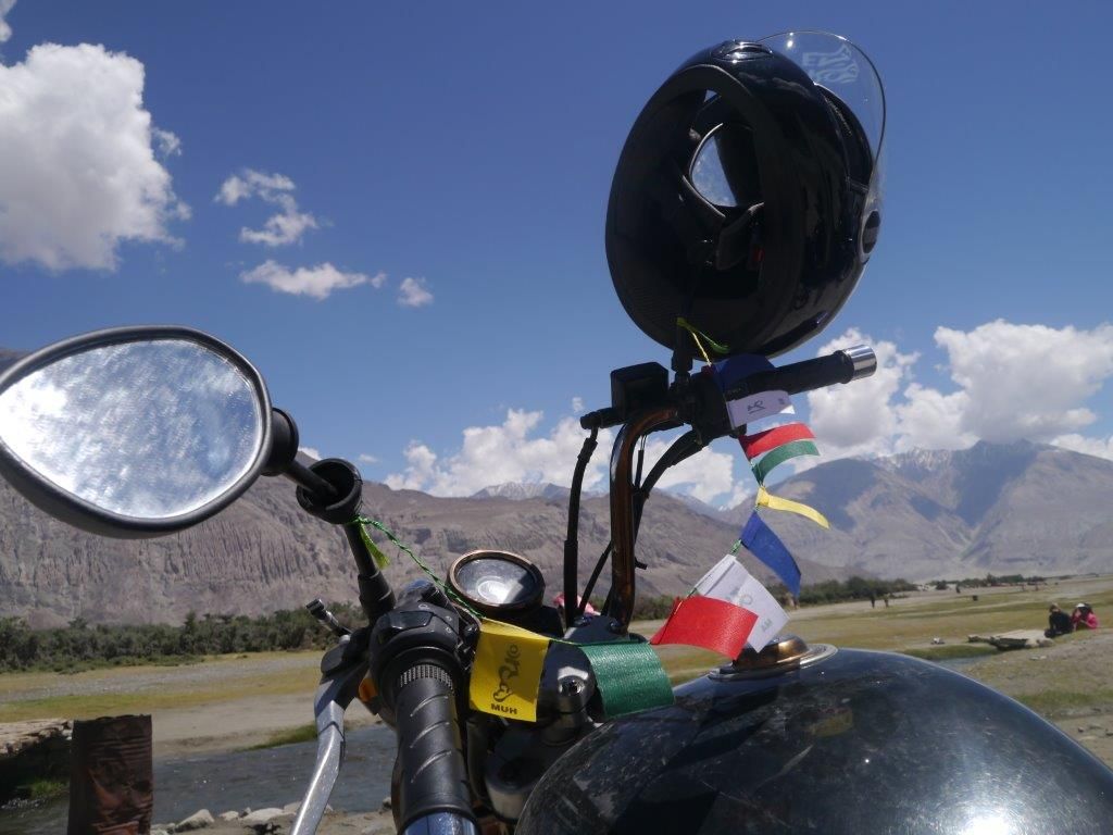 การท่องเที่ยวในแถบลาดัคห์นอกจากใช้คาราวานรถโฟร์วิลหรืออินโนว่าแบบพวกเรา การเดินทางโดยใช้มอเตอร์ไซด์คันใหญ่หรือบิ๊กไบท์ก็เป็นที่นิยม ระหว่างทางที่ผ่านมา พวกเราพบคนไทยที่มาขับบิ๊กไบท์อยู่กลุ่มหนึ่ง ซึ่งดูอ่อนระโหยโรยแรง AMS ทำให้การเดินทางของพวกเขายากลำบากมากว่าพวกเรา บิ๊กไบท์ที่นิยมมากที่นี่ดูเหมือนจะเป็นโรยัลเอนท์ฟิลด์ (Royal Enfield ) ผลิตขึ้นเองในอินเดียซึ่งเริ่มมาจากรัฐบาลอินเดียเสาะหารถมอร์เตอร์ไซด์สำหรับตำรวจและกองทัพสำหรับลาดตระเวณในแถบชายแดน ที่นี่พวกเราก็พบกับคาราวานบิ๊กไบท์อยู่กลุ่มหนึ่ง เพื่อความเป็นศิริมงคลของนักบิด บิ๊กไบท์คันหนึ่งนำธงมนตร์กับคันจับหน้ารถ สร้างสีสรรไปอีกแบบหนึ่ง คงคล้ายๆกับในเมืองไทยที่นิยมนำพระพุทธรูปเล็กๆหรือสายสิญจน์มาไว้ในรถยนตร์