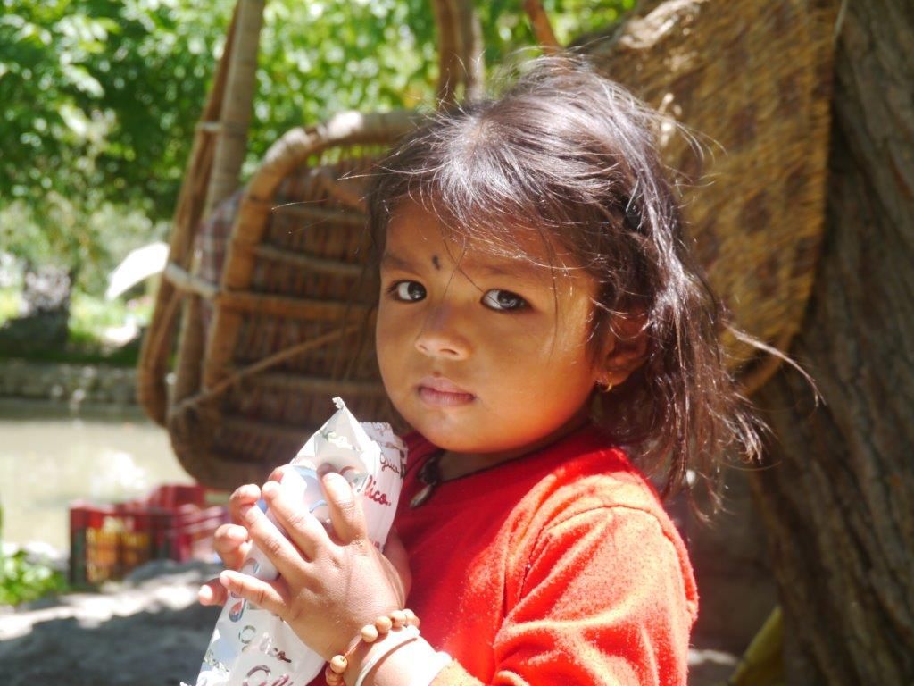 ระหว่างเดินเล่น ฉันได้เจอกับเด็กน้อยตากลมโตใสบริสุทธ์ แก้มยุ้ย หน้าผากเติมแต่งด้วย “บินดิ” จุดสีดำ กลางหน้าผาก (โดยทั่วไป เรามักจะพบหญิงสาวชาวอินเดียแต้มบินดิสีแดงเป็นเครื่องหมายว่าเธอแต่งงานแล้ว แต่ในบางส่วนของอินเดียผู้หญิงไม่ว่าแต่งงานแล้วหรือไม่ ไม่ว่าเป็นเด็กหรือผู้ใหญ่ก็แต้มบินดิ ชาวอินเดียที่นับถือฮินดูเชื่อว่า บินดิเป็นสัญญลักษณ์อันเป็นมงคล อาจเป็นสีอื่นก็ได้ แล้วแต่พิธีกรรม) เด็กน้อยไม่ว่าชาติใดในโลกใสบริสุทธ์ น่ารักเสมอ ใครคนหนึ่งยื่นขนมให้เธอ เธอรับมากอดไว้อย่างหวงแหนราวสมบัติมีค่า โลกทั้งโลกของเด็กน้อยคงมีแต่เพียงแค่นี้