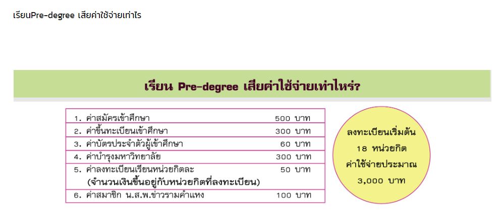 ที่มา : เรียน Pre-degree เสียค่าใช้จ่ายเท่าไหร่ มหาวิทยาลัยรามคำแหง