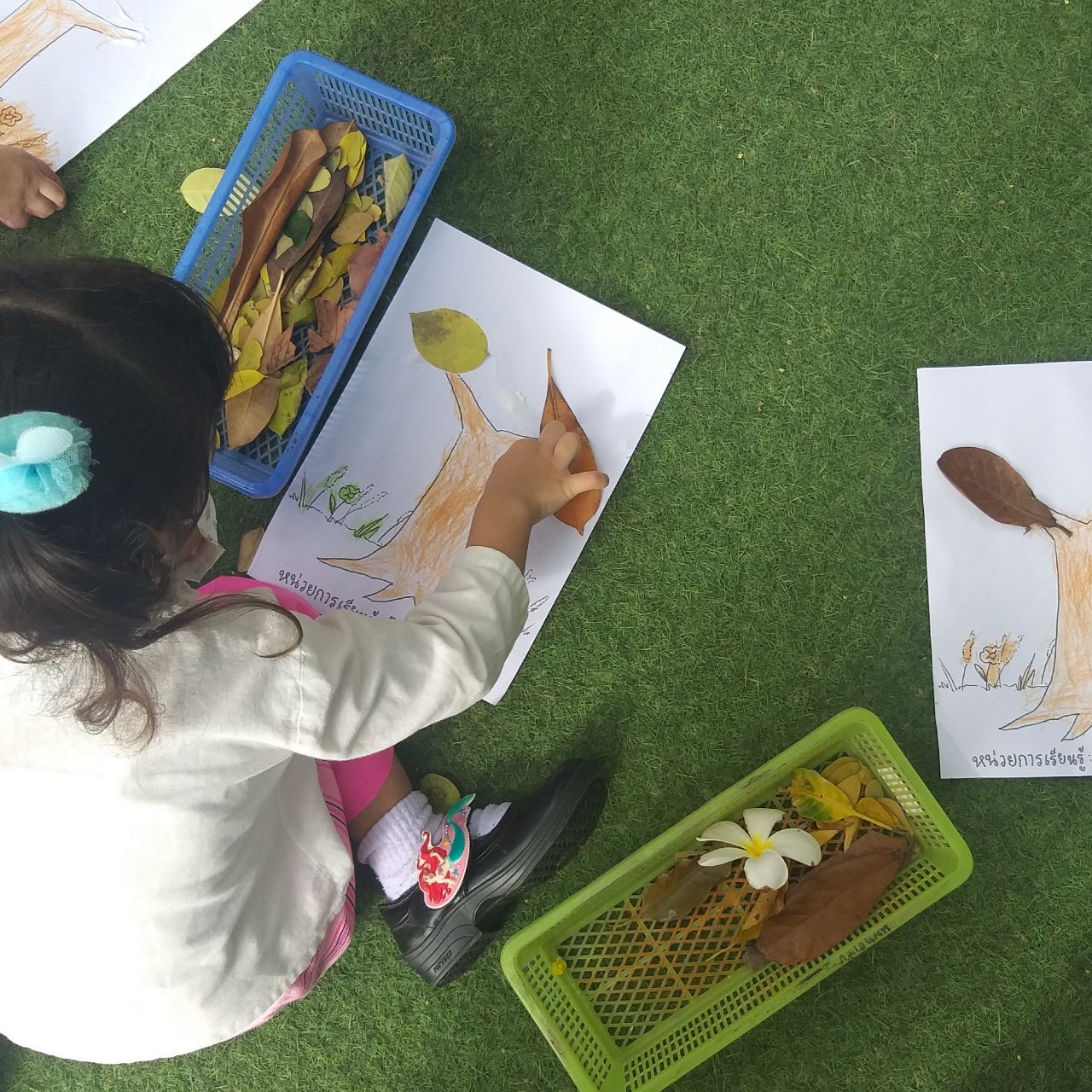 สำหรับหน่วยการเรียนรู้ในสัปดาห์นี้คือเรื่องต้นไม้ โดยครูจิ๊บก็ให้เราคิดกิจกรรมในวิชาศิลปะที่เกี่ยวกับต้นไม้ เราเลยเสนอไปว่าให้ตัดแปะรูปต้นไม้ดีมั้ย ครูจิ๊บก็เห็นด้วย เราเลยเสนอไปอีกว่าอาจจะให้เด็ก ๆ ได้ออกไปเรียนรู้นอกห้องเรียนด้วยการเก็บดอกไม้ใบไม้มาแปะแทนกระดาษดีมั้ยอาจจะทำให้เด็ก ๆ สนุกมากขึ้นแล้วเด็ก ๆ ก็จะได้รู้จักแล้วก็สัมผัสธรรมชาติจริง ๆ ไปในตัวด้วย ซึ่งครูจิ๊บก็เห็นด้วยและให้เราลงมือทำเลย