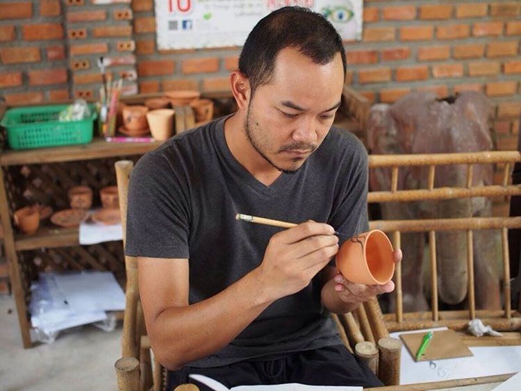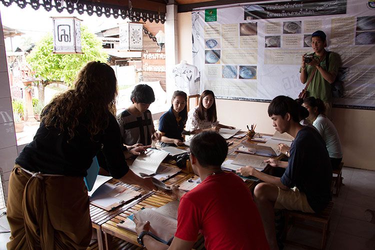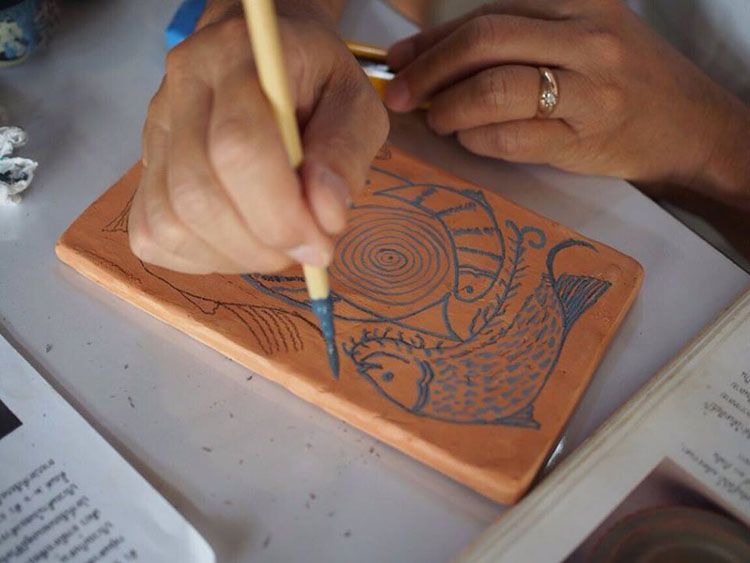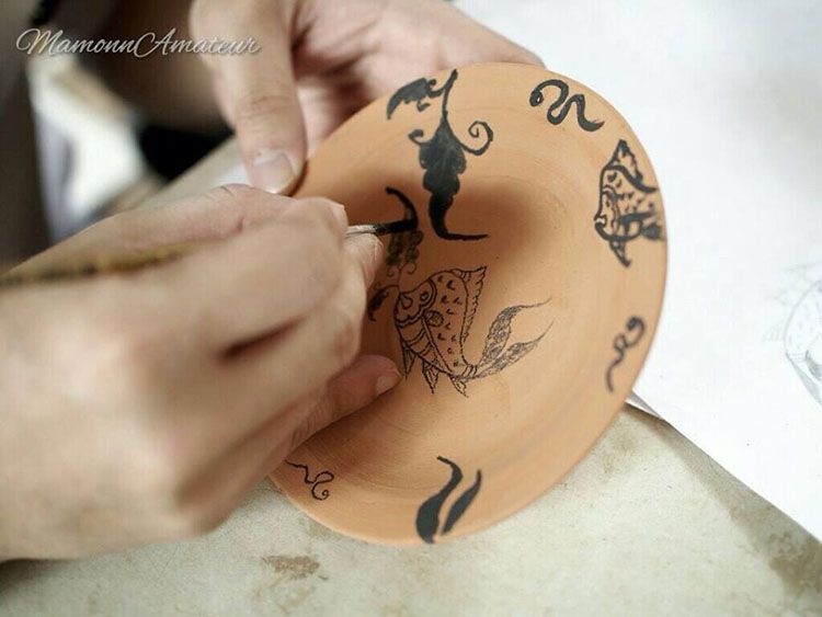 เขียนลายบนเครื่องสังคโลกก็สนุกไปอีกแบบ