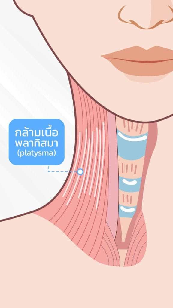 กล้ามเนื้อ Platysma ส่วนที่ดึงผิวลง ซึ่งเป็นสาเหตุหนึ่งที่ทำให้ใบหน้าหย่อนคล้อย แพทย์จะฉีดโบท็อกไปที่กล้ามเนื้อ Platysma นี้ เพื่อยกกระชับใบหน้า ช่วยให้กล้ามเนื้อส่วนที่ดึงผิวขึ้น มีแรงมากยิ่งกว่า