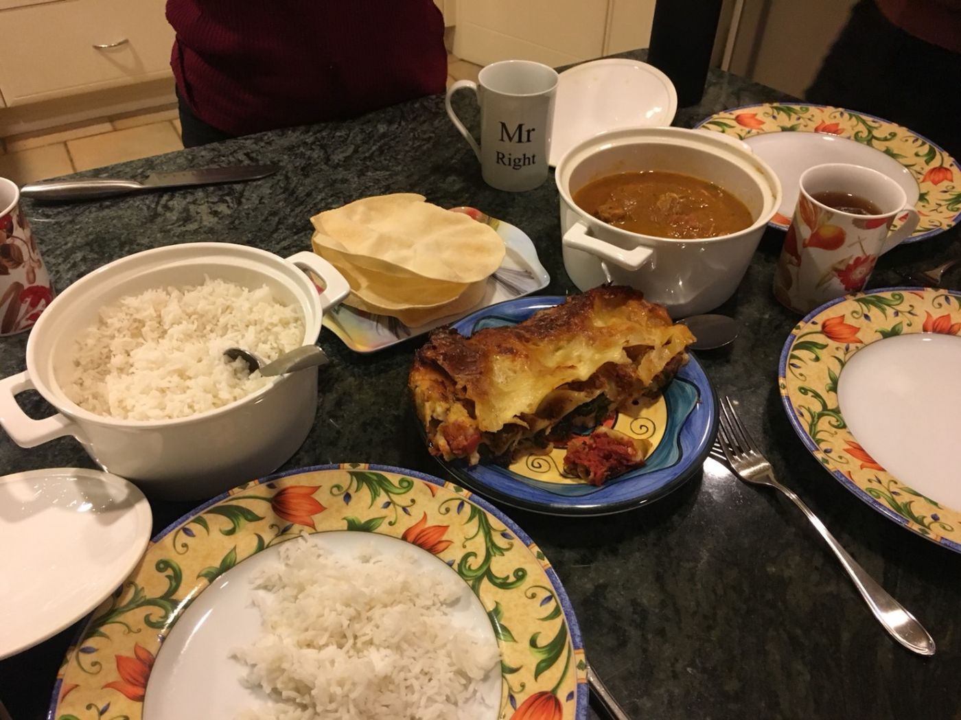 มื้อนี้เป็นแกงกะหรี่ กินกับข้าว แล้วก็ papadum แผ่นแป้งเหมือนข้าวเกรียบ