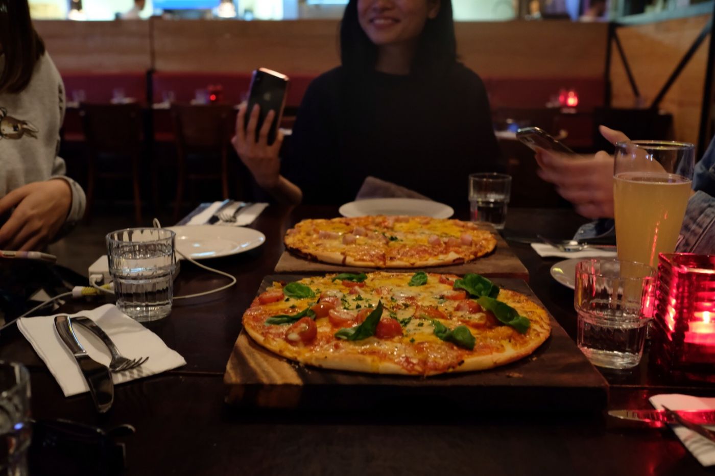 เราสั่งพิซซ่ามา 3 ถาด หารกันแค่คนละ 11$เอง ดีมาก !