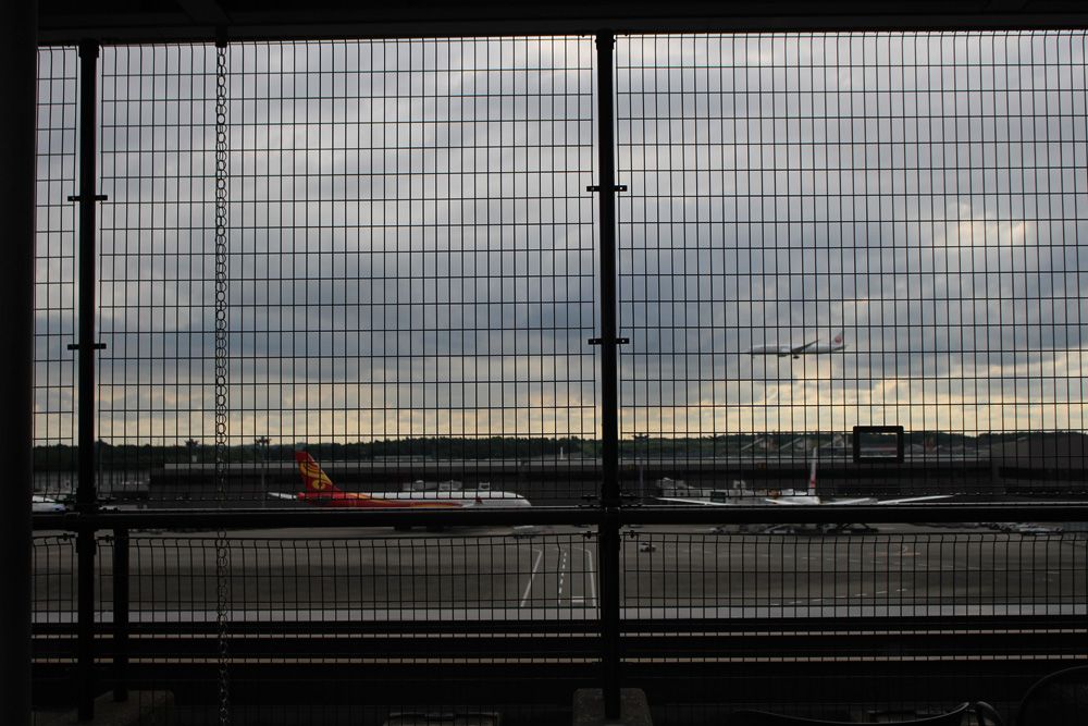 ระหว่างนั้นเราก็ไปเดินเล่นรอที่ห้างร้านแถวๆนั้น(พร้อมใจปิดกันทุกร้าน เปิดจริงๆราว9-10โมง) แต่มันมีอยู่โซนนึงที่เข้าไปได้คือ โซนให้ที่คนที่มาส่งยืนดูตอนเครื่องเทคออฟ หรือก็คือจุดชมวิวดีๆนี่เอง อากาศดาดฟ้าหนาวมาก ลมพัดหอบความเย็นมาตลอดเวลา ...แต่พอมายืนอยู่แล้วก็สงบใจดี มีช่างกล้องตั้งกล้องโปรถ่ายเลย ทุ่มทุนมากๆ เราก็แอบเก็บภาพสองสามแชะแล้วก็รีบเข้าอาคาร ก็หนาวง่ะ