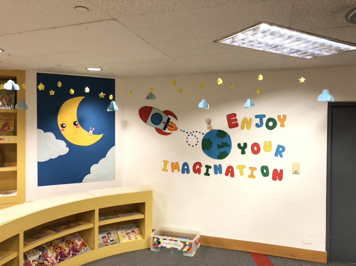 ตกแต่งเสร็จแล้ว ในที่สุดก็ได้ห้องอ่านหนังสือน่ารัก ๆ สำหรับน้อง ๆ น่ารักกว่าที่ออกแบบไว้เยอะเลย แม้ใจจริงจะอยากติดดาวกับก้อนเมฆให้ทั่วห้อง แต่คิดไปคิดมาห้องตงจะดูรกน่าดู พวกเราจึงหยุดความคิดไว้เพียงเท่านี้