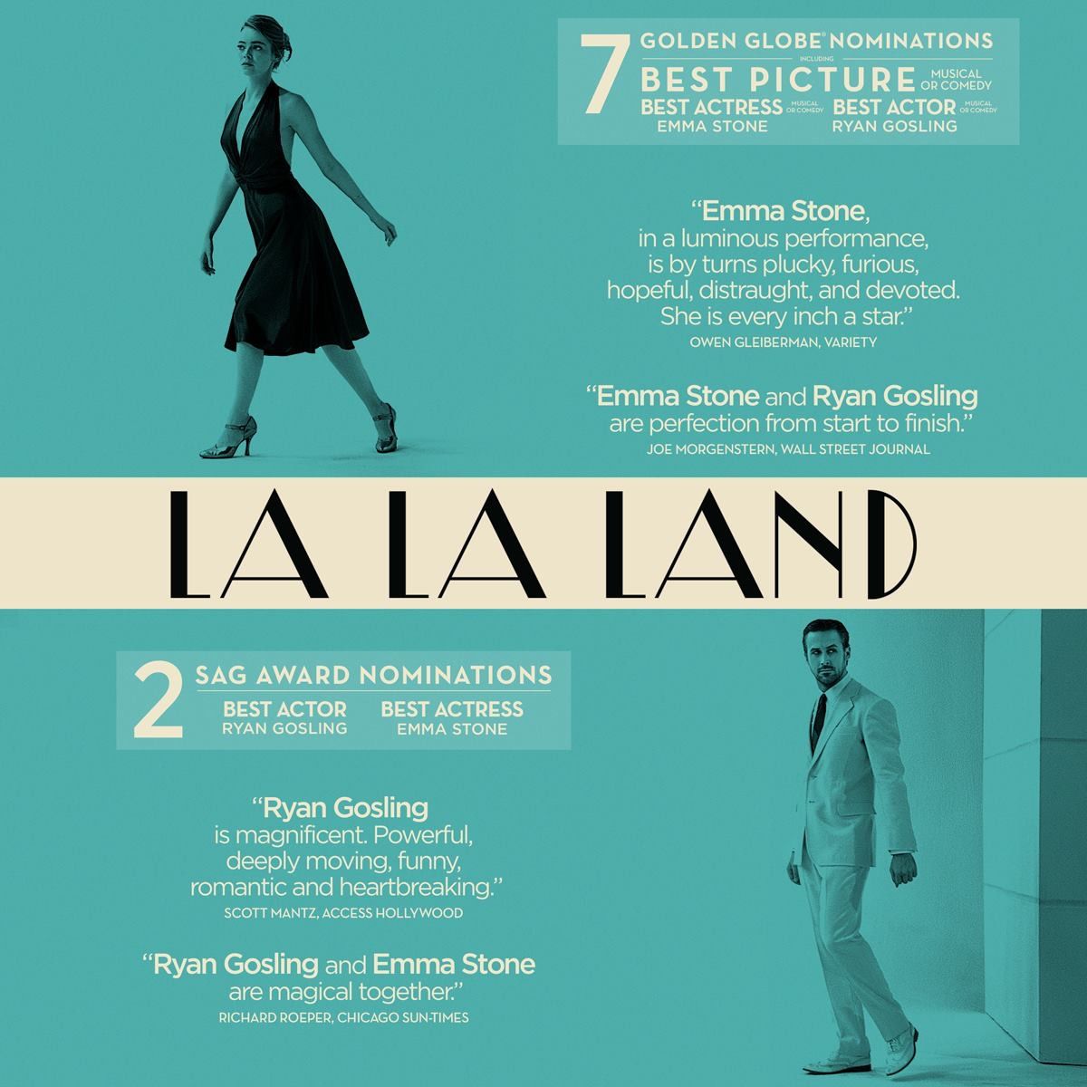 #LALALAND ได้รับรางวัล 8 รางวัล จาก Critics' Choice Awards Best Picture Best Director – Damien Chazelle (ผู้กำกับ Whiplash) Best Original Screenplay – Damien Chazelle (tie) Best Cinematography – Linus Sandgren Best Production Design – David Wasco, Sandy Reynolds-Wasco Best Editing – Tom Cross Best Song – City of Stars Best Score – Justin Hurwitz