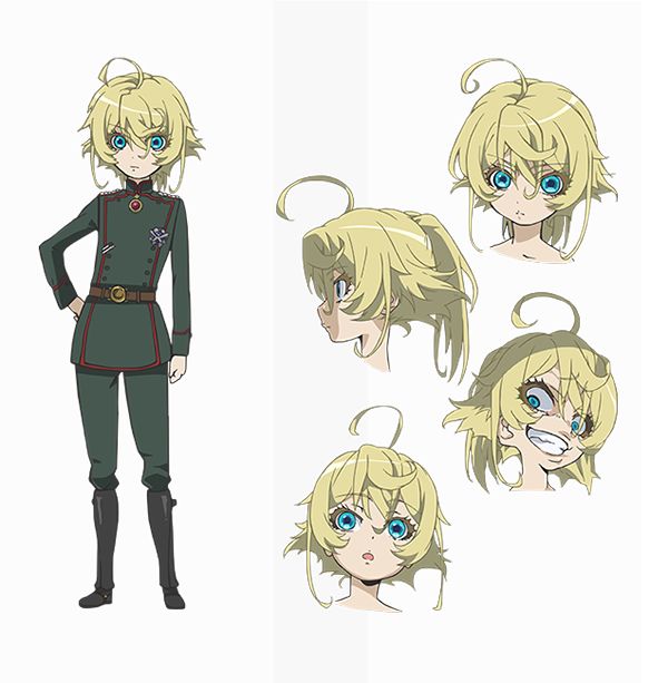 เด็กผู้หญิงตัวเล็ก ผมสีบลอนด์ทอง มีดวงตากลมโตสีฟ้า เธอเป็นหน่วยจอมเวทย์เวหาแห่งจักรวรรดิ