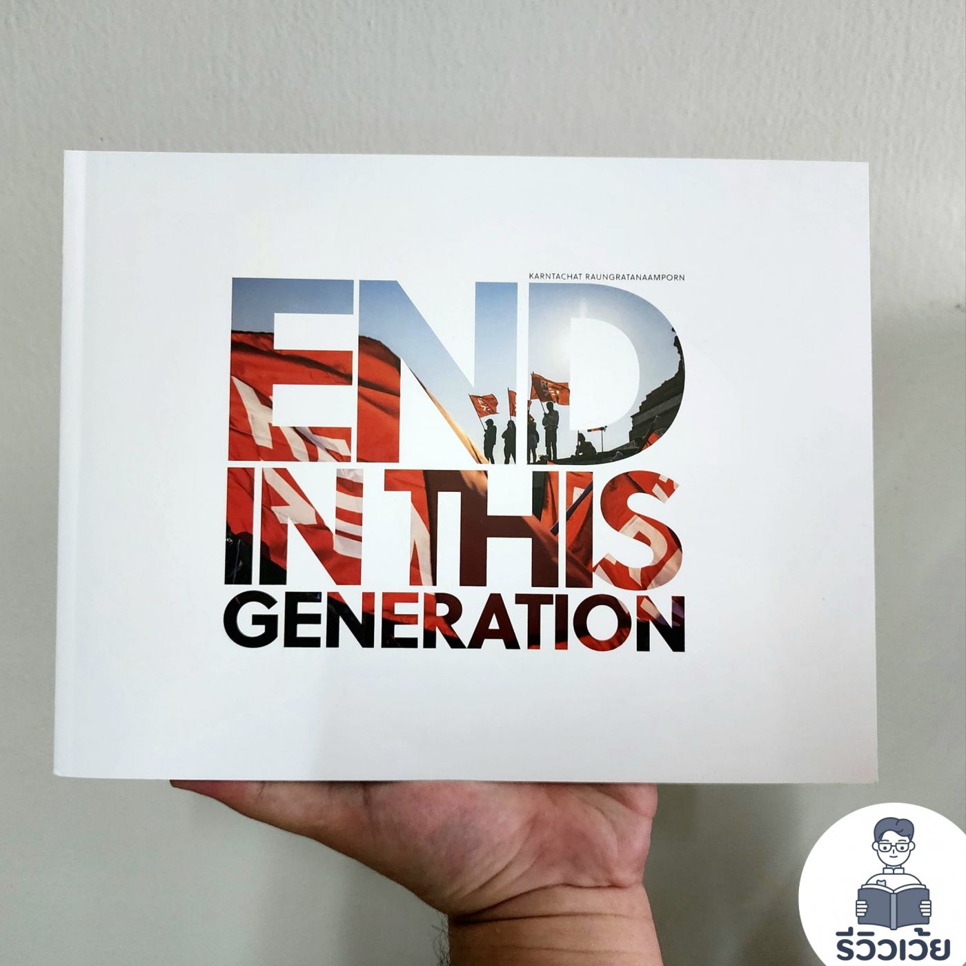 หนังสือ : END IN THIS GENERATION โดย : Karntachat Raungratanaamporn จำนวน : 130 หน้า . "END IN THIS GENERATION" หนังสือภาพที่รวบรวมและบอกเล่าเรื่องราวประวัติศาสตร์หน้าใหม่ของการเมืองไทย ตั้งแต่ช่วง 10 สิงหาคม 2563 - 12 ธันวาคม 2564 ที่ทำหน้าที่ในการบันทึกเหตุการณ์ทางการเมืองช่วงเวลาสำคัญช่วงหนึ่งผ่านรูปแบบของ "ภาพบันทึก" หรือการบันทึกภาพต่าง ๆ ของเหตุการณ์ ผ่านการเก็บเรื่องราวมาบอกเล่าในภาพถ่าย โดยไม่จำเป็นต้องมีข้อความ รูปประโยคหรือคำอธิบายอื่นใด เพราะภาพทุกภาพได้พูดแทนการเขียนเอาไว้อย่างชัดเจน บางภาพปรากฏในลักษณะของการบอกเล่าผ่านแววตา บางภาพบอกเล่าผ่านองค์ประกอบและเหตุการณ์ที่ปรากฏขึ้นในภาพ และบางภาพก็แสดงออกผ่านหลักฐานของการใช้กำลังและความรุนแรงเข้าขีดเขียนช่วงเวลาของประวัติศาสตร์ยุคใหม่ของสังคม . ภาพถ่ายต่าง ๆ ที่ปรากฏอยู่ใน "END IN THIS GENERATION" แบ่งวิธีการบอกเล่าผ่าน "การจัดกลุ่ม" ของภาพถ่ายเอาไว้ด้วยกันทั้งสิ้น 4 กลุ่ม ได้แก่ (1) No return end in this generation. (2) Escalation end in this generation. (3) Containment end in this generation. และ (4) No compromise end India's generation. ซึ่งภาพถ่ายที่ปรากฏอยู่ในทั้ง 4 กลุ่ม คือผลงานที่สะท้อนภาพส่วนหนึ่งของการเปลี่ยนแปลงของการเมืองไทยสมัยใหม่ . เมื่อเราพิจารณาจากชื่อของหนังสือ "END IN THIS GENERATION" เราอาจจะแปลมันได้ว่า "ให้มันจบที่รุ่นเรา" น่าสนใจว่าเหตุการณ์ทางการเมืองของไทยต่อจากนี้ไปจะเป็นเช่นไร และในการสิ้นสุดของสิ่งหนึ่งมันจะเป็นการเริ่มต้นของสิ่งใหม่เสมอ