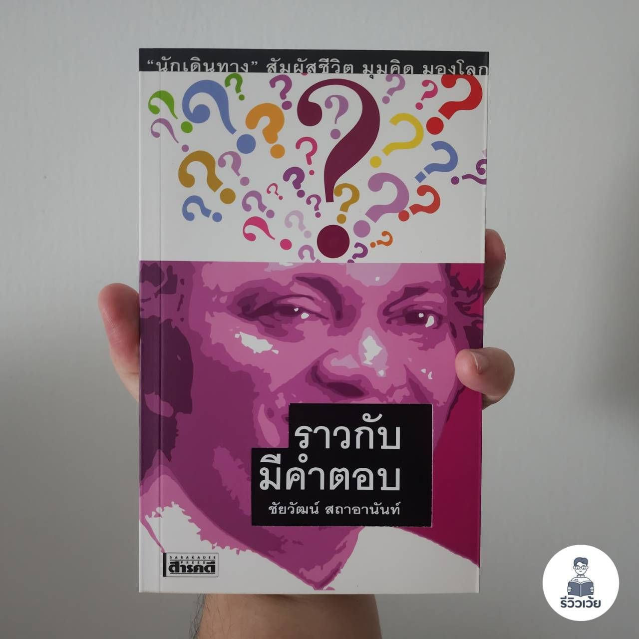 "ราวกับมีคำตอบ" ของ ศาสตราจารย์ ดร. ชัยวัฒน์ สถาอานันท์ เป็นเสมือนงานเขียนแนวสารคดีเชิงความคิด ที่เชื้อเชิญให้ผู้อ่านออกเดินทางไปพร้อมกับผู้เขียนเพื่อสำรวจโลกและชีวิตผ่านการตั้งคำถาม หนังสือเล่มนี้รวบรวมบทความเชิงความคิดที่ผู้เขียนได้เก็บเกี่ยวจากประสบการณ์การเดินทาง การสังเกตชีวิตผู้คน และการใคร่ครวญในฐานะนักทฤษฎีสังคมและปรัชญาการเมือง