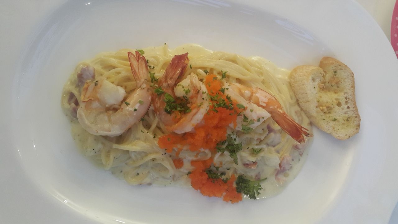 คุณคะ มันอร่อยจริงๆนะ ได้ความครีมมี่เต็มๆ แต่ไม่เลี่ยน กวาดซอสในจานจนหยดสุดท้าย ที่นี่ใช้กุ้งคุณภาพดีด้วย สด ตัวใหญ่ อร่อย เนื้อเด้ง พร้อมไข่กุ้งกรุบๆอีก เพลินจนลืมเลี่ยนไปเลย