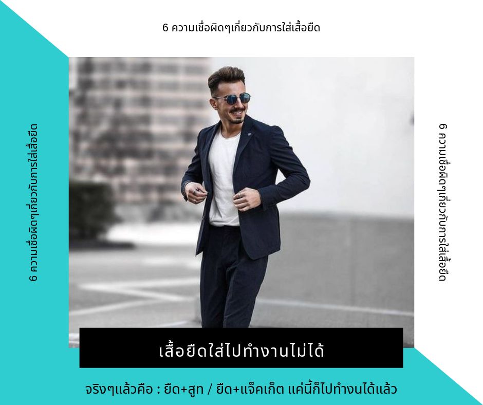 5. เสื้อยืดใส่ไปทำงานไม่ได้ อันนี้ต้องแล้วแต่บริบทและกาละเกศะของอาชีพและที่ทำงานของคุณด้วยครับแต่สำหรับผมแล้วเสื้อยืดสามารถนำไปผสมผสานกับชุดอื่นๆเพื่อให้ออกมาดูดี เป็นทางการและใส่ไปทำงานได้ ยกตัวอย่างเช่น เสื้อยืด+สูท , เสื้อยืด + แจ็คเก็ต , เสื้อยืดคอผ่า เป็นต้น