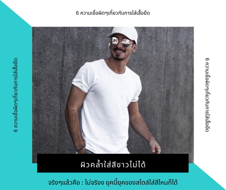 4. ผิวคล้ำใส่สีขาวไม่ได้ อันนี้ไม่จริงเลยครับยุคสมัยนี้เป็นเรื่องของสไตล์และความมั่นใจการที่ท่านมีผิวสองสีแล้วใส่เสื้อสีขาวไม่ได้นั้นผมไม่เห็นด้วยในทางกลับกันแล้วการที่คุณมีผิวสองสีซึ่งเป็นสีที่สวยมากๆใส่สีขาวยิ่งจะขลับให้ผิวของคุณสว่างขึ้น ดังนั้นใส่สีไหนก็ได้ครับแล้วแต่ความพอใจและสไตล์