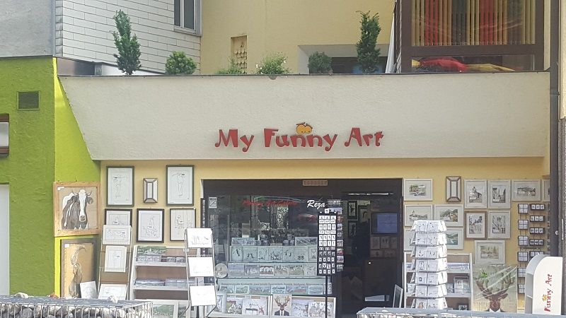 ระหว่างทางเจอที่พัก ร้านอาหาร ร้านต่าง ๆ มากมาย โลมาชอบร้าน "My Funny Art" ดูน่ารักดี