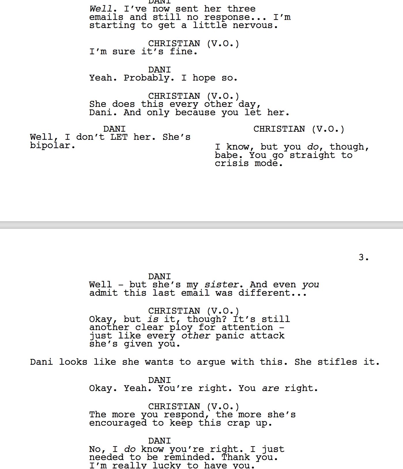 และถึงตัวบทอธิบายว่าแดนี่อยากจะเถียงคริสเตียน เธอก็ไม่อยากทะเลาะและสุดท้ายก็ได้แต่พูดซ้ำๆว่าเขาถูกๆ ซึ่งเป็นการ 'ถูกกด' ในบท 'เหยื่อ' ของ gaslighting โดยสมบูรณ์