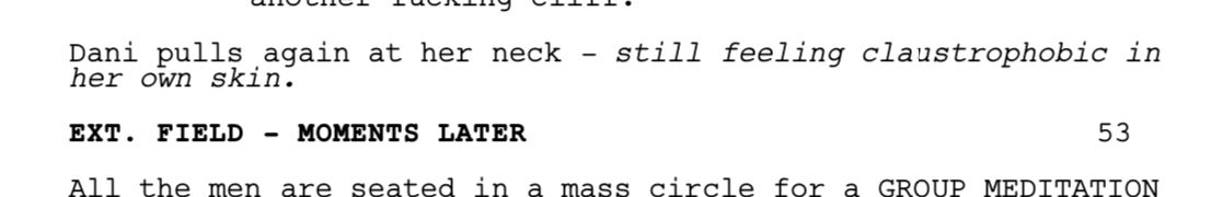 ฉากรวม 'run-through' แสดงหลายช็อตน่าสะพรึง (ที่เราคาดเดามาแล้วว่าต้องมี) ขณะแดนี่กำลังเมายาทำให้เรานึกถึงฉากสไตล์เดียวกัน (แต่โหดและรัวเร็วกว่าด้วยจำนวนช็อตที่ถี่ขึ้น) ใน Suspiria (2018)