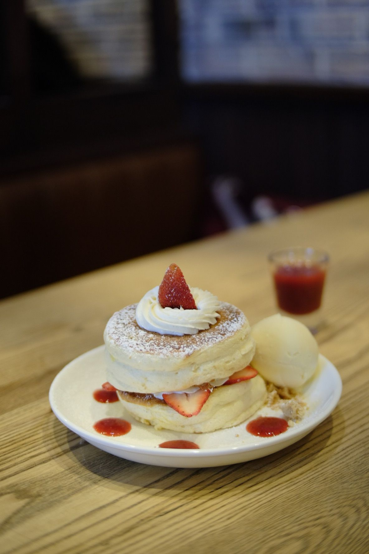 รีวิว : เมนูนี้ตัวแพนเค้กมีความนุ่มฟู fluffy เด้งดึ๋ง หอมเนยมาก รสชาติมีความหวานกำลังดีเสิร์ฟพร้อมสตรอว์เบอร์รี่สดๆเนื้อหวานฉ่ำ พร้อมกับซอสสตรอเบอร์รี่ที่มีความเปรี้ยวหวานลงตัว ทานกับไอศกรีม