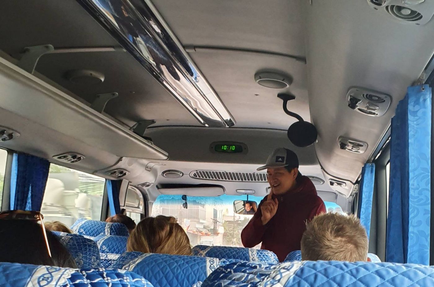 นอกจากเเนะนำตัวเองเเล้ว ยังเเนะนำผู้โดยสารทั้งหมดบนรถให้เราฟังด้วย