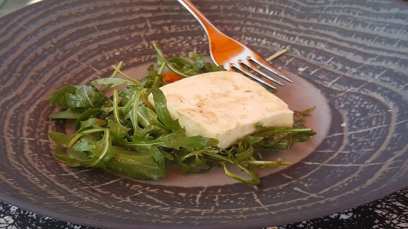Fresh Cheese from Krasolesi, Bell Pepper Adjika, Arugula