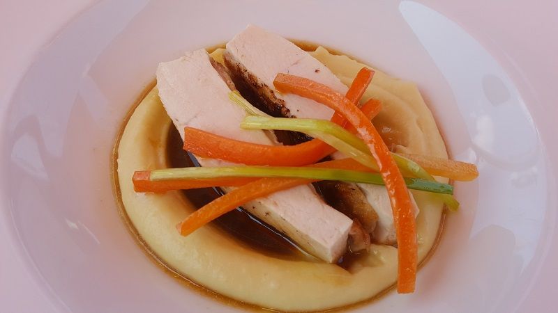 Chicken Supreme, Mush Potato, Sauteed Carrots, Leek